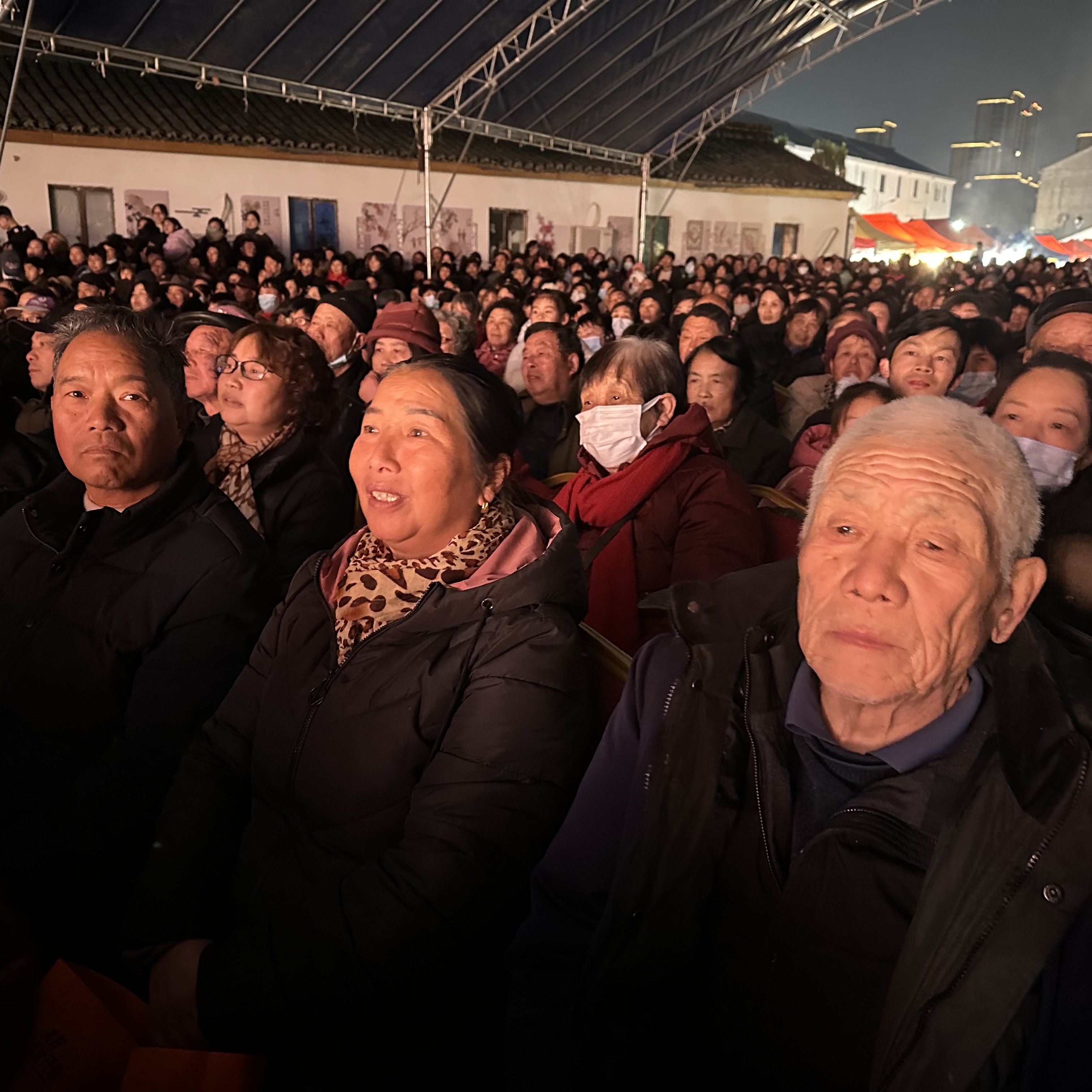 村民陈先生带着不到三周岁的女儿来看戏。“小时候最爱去戏文场里边看边吃,哪怕看不懂戏曲,也要去凑热闹。如今带着孩子重温童年乐事,也是别有一番风味。”陈先生感慨道,希望这样的传统文化节目能经常地在村子里举办。